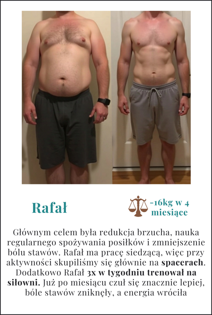 Akademia Odchudzania 16 opinii GoogleOpublikowano na Sylwia Bober bardzo polecam 🙂 efekty po miesiacu bardzo zauważalne, dużo lepsze samopoczucie i sylwetka tez się zmieniła 🙂 wszystko dokładnie wyjaśnione,wiem gdzie popełniałam błedy i co poprawić 😁 współpraca pomogła mi ruszyć z miejsca 😅Opublikowano na Sara Augustyn Karolina to prawdziwa ekspertka w swoim fachu! Dzięki jej wiedzy i indywidualnemu podejściu w końcu udało mi się osiągnąć efekty, na które czekałam od dawna. Plan żywieniowy? Idealnie dopasowany do moich upodobań – jem smacznie, prosto i bez uczucia, że „jestem na diecie”. Treningi? Stworzone specjalnie pod moje możliwości i sprzęt, co sprawia, że ćwiczenia są skuteczne i nie męczą psychicznie. <3 Największym plusem współpracy z Karoliną jest to, że zawsze mogę liczyć na jej wsparcie. Odpowiada na wszystkie pytania, rozwiewa wątpliwości i przede wszystkim – motywuje do działania. Nie czuję presji ani wyrzutów sumienia, tylko realną pomoc i zrozumienie. Dzięki Karolinie odzyskałam kontrolę nad swoim ciałem i zdrowiem. Jeśli ktoś szuka skutecznej drogi do lepszego samopoczucia i formy, to nie ma lepszego wyboru!Opublikowano na Gosia Żaczek Współpraca z Karoliną to strzał w dziesiątkę! Dieta jest nie tylko zdrowa, ale też pyszna i sycąca, dzięki czemu nie ma uczucia głodu ani potrzeby podjadania. Treningi są świetnie rozpisane, dostosowane do indywidualnych możliwości, a co najważniejsze – przynoszą efekty! Widoczna poprawa sylwetki i samopoczucia daje ogromną motywację do dalszej pracy. Profesjonalne podejście i wsparcie na każdym etapie sprawiają, że cały proces jest przyjemnością. Gorąco polecam!Opublikowano na Agnieszka Biel Serdecznie polecam! Pyszne przepisy, szybkie w wykonaniu, świetny kontakt i pełne dostosowanie do preferencji ❤️ Jem co lubię, a efekty są niesamowite. ❤️❤️❤️Opublikowano na Karolina Współpraca dietetyczna z Karoliną to czysta przyjemność! Od początku zwróciłam uwagę na jej szybką komunikację i elastyczne podejście – zawsze można liczyć na jej wsparcie i dostosowanie planu do indywidualnych potrzeb. Jadłospisy są świetnie skomponowane – przepisy są proste, bazują na łatwo dostępnych składnikach, a ich przygotowanie zajmuje niewiele czasu. Najważniejsze jednak, że we współpracy z Karoliną czuję się bardzo bezpiecznie. Czuć, że autentycznie zależy jej na moich postępach i chce pomóc w osiągnięciu najlepszych rezultatów. Jej wsparcie i profesjonalizm sprawiają, że z pełnym przekonaniem polecam współpracę z Karoliną każdemu!Opublikowano na Małgorzata Leszczyńska Dzięki Karolinie waga spada bez efektu jojo, a sylwetka znacząco się poprawia. Pierwszy raz od momentu zachorowania na niedoczynność tarczycy czuję, że odzyskałam kontrolę - mimo "diety" nie odczuwam jakbym na jakiejkolwiek była, jem to, co lubię. Karolina zastosowała się do wszystkich moich próśb dotyczących lubianych produktów. Dodatkowo ułożyła pełen plan treningowy w oparciu o to jakim sprzętem dysponuję i że preferuję treningi w domowej siłowni. Przez cały okres współpracy mamy stały kontakt i w każdym momencie mogę uzyskać odpowiedzi na frapujące mnie pytania. Jeśli zależy Wam na bezbolesnej walce z chorobą z super trenerem w swoim narożniku - to Karolina jest najlepszym wyborem.Opublikowano na Paulina K Szczerze polecam współprace z Karoliną. Ma świetne podejście, z jadłospisem trafiła w punkt jakbyśmy się znały lata i mega pyszne jedzonko, człowiek nawet nie myśli że jest na redukcji, i w końcu widzę rezultaty!Opublikowano na Oliwia Wasilewska Podjęcie współpracy z Karoliną było najlepszą decyzją jaką podjęłam. Pyszne jadłospisy, plan treningowy dostosowany do moich potrzeb, a przede wszystkim super wsparcie z jej strony. Serdecznie polecam ❤️Opublikowano na Karolina Jągowska Świetna specjalistka z bardzo dobrym podejściem do podopiecznych. Program oferowany przez Karolinę był jak do tej pory najlepszą współpracą dietetyczno-treningową, jaką miałam okazję przetestować. Polecam wszystkim zmagającym się z problemami z tarczycą.Opublikowano na Ilona Wiśniowska - Marcinkiewicz Polecam z całego serca współpracę z Karoliną, przemiła, odpowie na każde pytanie, doradzi, pocieszy. Bardzo zdrowe podejście do diety i treningu. Jadłospisy są bardzo proste, jedzenie przepyszne i co najważniejsze nic się nie marnuje! :)